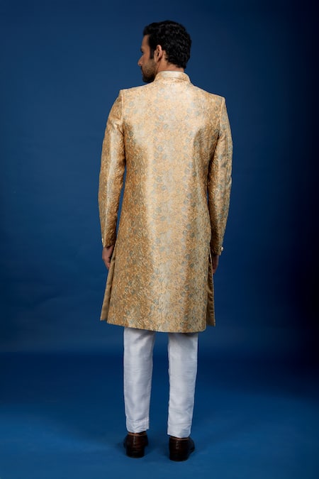 Gold Silk, Dupion Embroidery Floral Pattern Sherwani With Pant