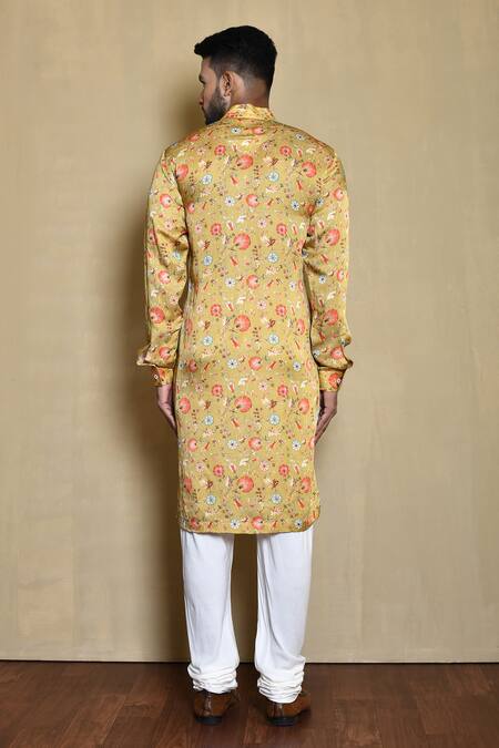 Buy_Arihant Rai Sinha_Yellow Silk, Cotton Embroidery Floral Print Kurta Set_at_Aza_Fashions