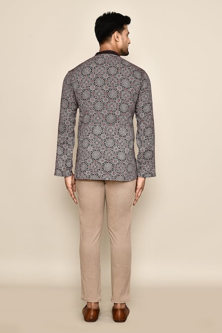 Floral print all over the kurta, Mandarin collar design, Front placket closure