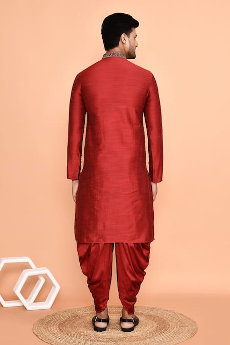 Buy_Arihant Rai Sinha_Maroon Silk Embroidery Floral Thread Kurta With Patiyala _Online_at_Aza_Fashions