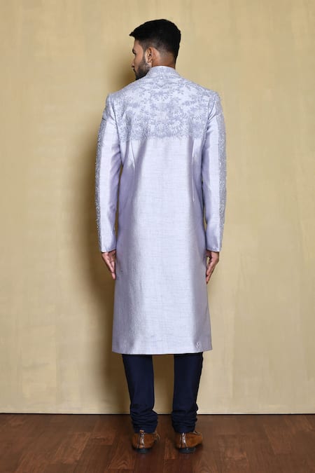 Buy_Arihant Rai Sinha_Grey Silk, Cotton Sequins, Embroidery Floral Vine Sherwani Set_Online_at_Aza_Fashions