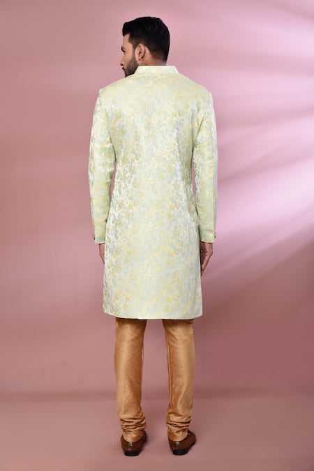 Buy_Arihant Rai Sinha_Blue Jacquard, Silk Embroidery Floral Woven Pattern Nawabi Jacket Kurta Set