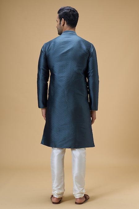 Buy_Arihant Rai Sinha_Grey Jacquard, Silk Embroidery Floret Pattern Border Kurta With Churidar _at_Aza_Fashions