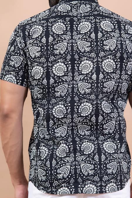 Black shirt crafted in pure cotton featuring floret print all over and a front pocket