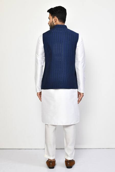 Midnight blue sleeveless bundi featuring all over florid tiny crystals embellishments