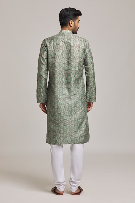 Buy_Arihant Rai Sinha_Green Viscose, Silk, Cotton Embroidery, Sequins Flower Print Kurta Set _at_Aza_Fashions