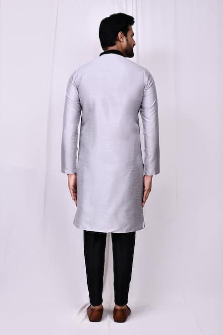 Grey Silk Embroidery Front Zip Detail Kurta With Pant Pyjama
