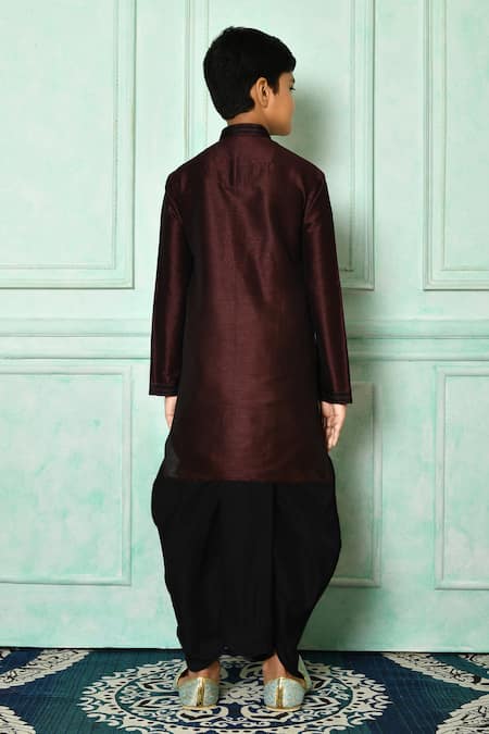 Buy_Petite Pomme_Wine Silk, Cotton Full Sleeve Kurta And Dhoti Pant Set _Online_at_Aza_Fashions