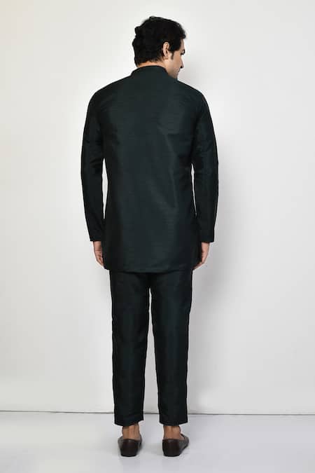 Buy_Arihant Rai Sinha_Black Silk, Cotton Full Sleeve Short Kurta Set _Online_at_Aza_Fashions