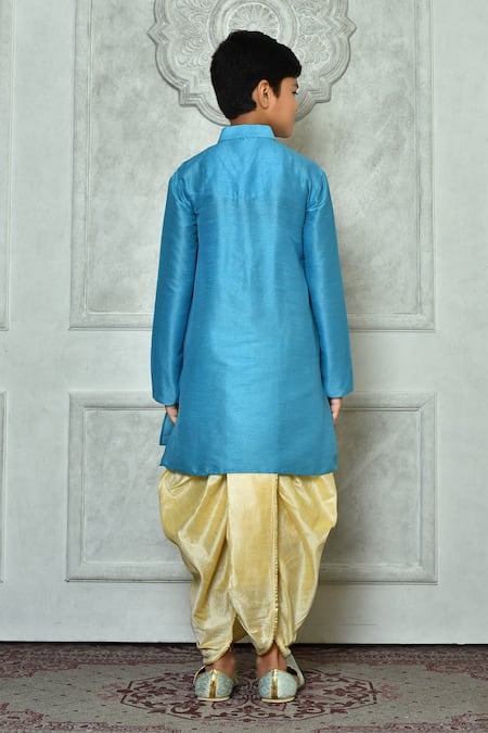 Buy_Petite Pomme_Blue Silk Full Sleeve Straight Kurta And Dhoti Pant Set _Online_at_Aza_Fashions
