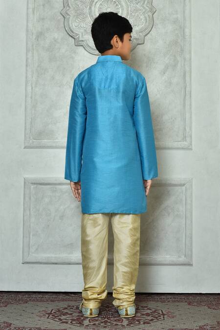 Buy_Petite Pomme_Blue Denim Full Sleeve Straight Kurta _at_Aza_Fashions