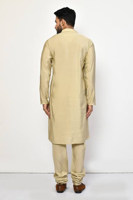 Buy_Arihant Rai Sinha_Beige , Satin Full Sleeve Straight Kurta_Online_at_Aza_Fashions