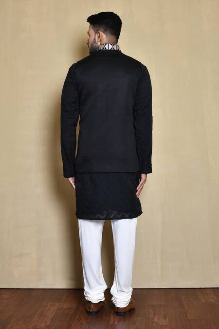 Buy_Arihant Rai Sinha_Black Cotton Embroidery Geometric Bundi Kurta Set_Online_at_Aza_Fashions