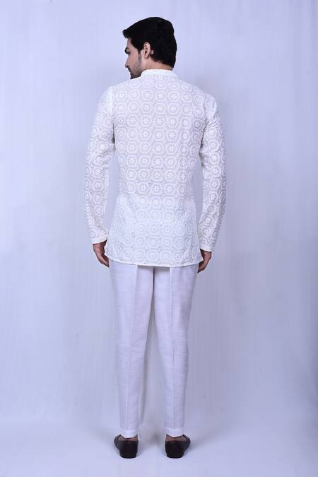 White Cotton Embroidery Geometric Floral Pattern Chikankari Short Kurta