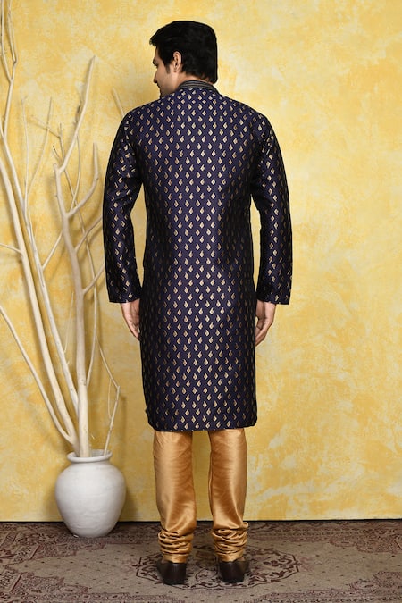 Buy_Arihant Rai Sinha_Blue Silk Embroidery Geometric Pattern Kurta And Churidar Set _Online_at_Aza_Fashions