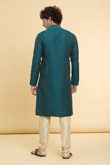 Buy_Arihant Rai Sinha_Green Jacquard, Silk Embroidery Geometric Pattern Kurta _at_Aza_Fashions