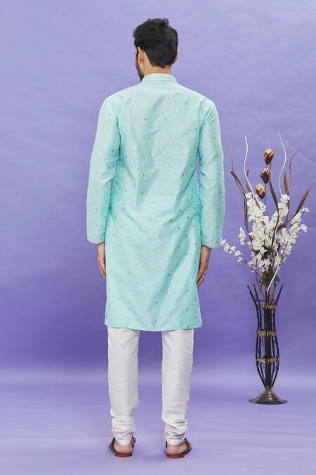 Mint green jacquard banarasi silk kurta featuring geometric patterns and pintucks detailing