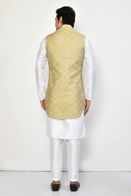 Buy_Arihant Rai Sinha_Beige Satin, Cotton Embroidery Geometric Nehru Jacket_Online_at_Aza_Fashions