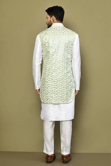 Buy_Arihant Rai Sinha_Green Silk, Cotton Embroidery Geometric Pattern Nehru Jacket_Online_at_Aza_Fashions
