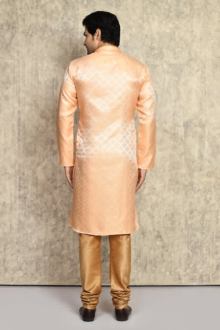 Buy_Arihant Rai Sinha_Orange Silk Embroidery Geometric Pattern Straight Woven Kurta And Churidar Set_at_Aza_Fashions