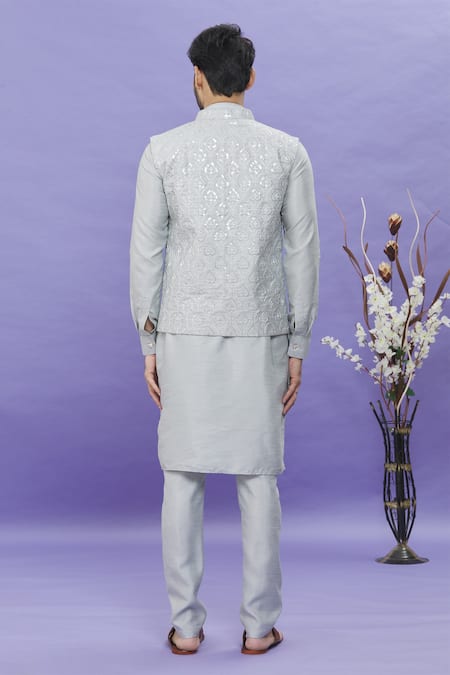 Buy_Arihant Rai Sinha_Gray Silk Embroidery Geometric Printed Bundi _Online_at_Aza_Fashions