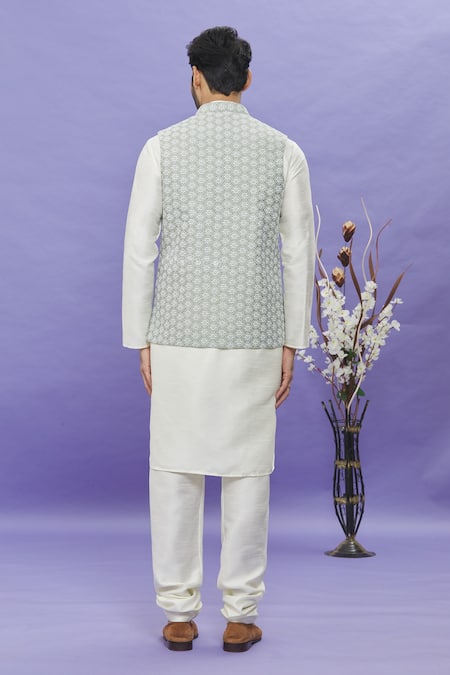 Buy_Arihant Rai Sinha_Green Silk Embroidery Geometric Thread Work Bundi _at_Aza_Fashions