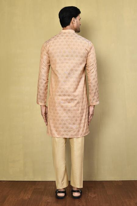 Buy_Arihant Rai Sinha_Peach Jacquard, Cotton Geometric Woven Kurta And Pyjama Set_Online_at_Aza_Fashions