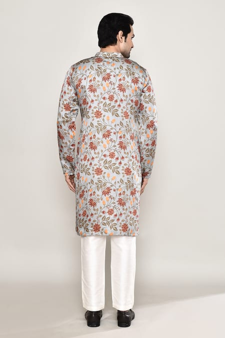 Grey Cotton, Silk Embroidery Gul Print Kurta