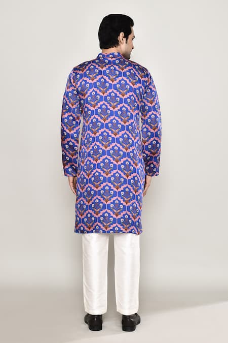 Blue & multi color kurta featuring full sleeves, band collar, and all over guldasta print