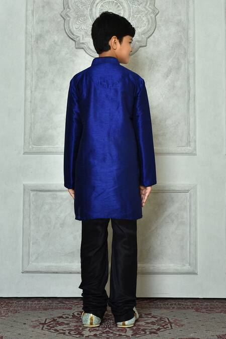 Petite Pomme_Blue Silk Half Button Placket Kurta _Online_at_Aza_Fashions