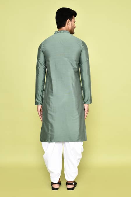 Green Silk, Cotton Mirrors Linear Embroidered Kurta With Patiyala