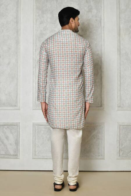 Multi colored cotton silk short kurta featuring all-over mandala floral prints