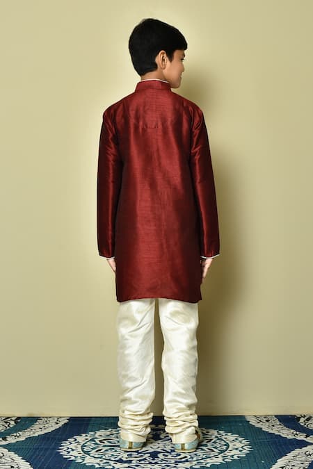 Petite Pomme_Maroon Silk Mandarin Collar Kurta _at_Aza_Fashions