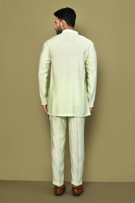 Buy_Arihant Rai Sinha_Green Silk, Cotton Mandarin Collar Short Pastel Kurta_Online_at_Aza_Fashions