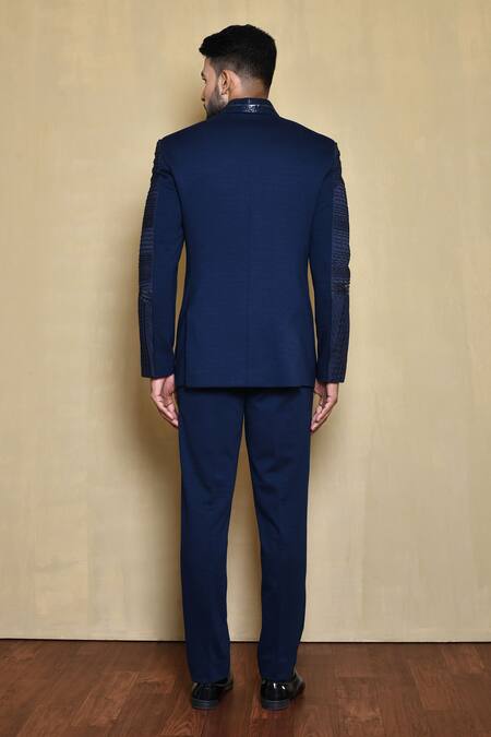 Buy_Arihant Rai Sinha_Blue Polyester Embroidery Metallic Bandhgala Set_Online_at_Aza_Fashions