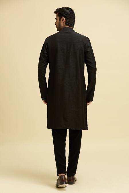Black Silk, Viscose Mirrors Embroidered Placket Kurta And Pant Set