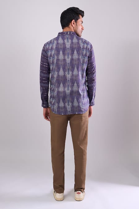 Navy Cotton Blue Digital Print Slim Fit Shirt