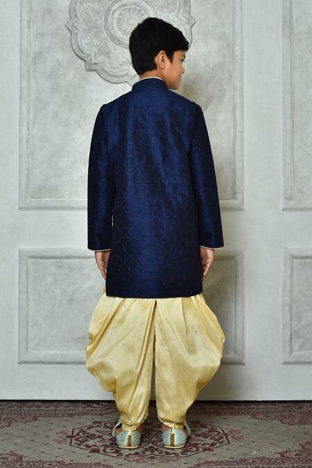 Blue Silk Embroidery Navy Thread Work Kurta Set