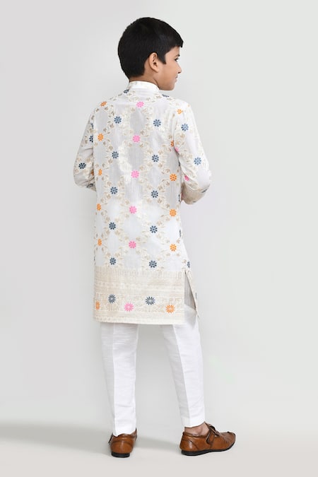 Petite Pomme_Off White Silk Embroidery Kurta And Pant Set _at_Aza_Fashions