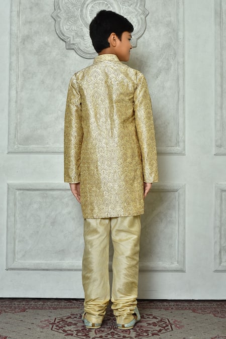 Beige Silk Embroidery Paisley Kurta And Churidar Set