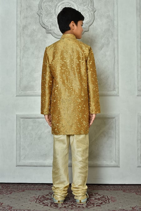Brown Silk Embroidery Paisley Thread Work Kurta