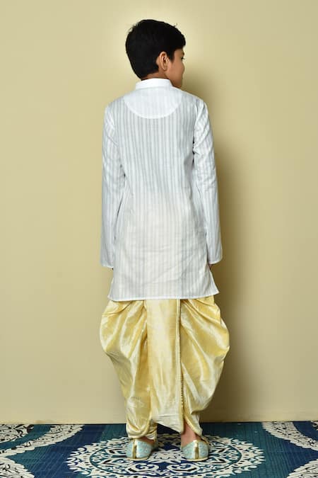 White Cotton, Silk Patterned Kurta And Dhoti Set