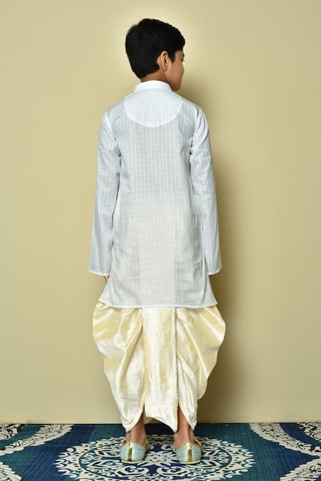 White Cotton, Silk Patterned Kurta And Dhoti Set