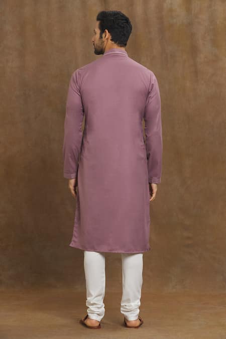 Purple kurta featuring stitchline thread embroidery on placket and a mandarin collar