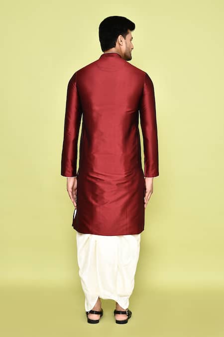 Maroon Silk Plain Kurta With Dhoti Pant