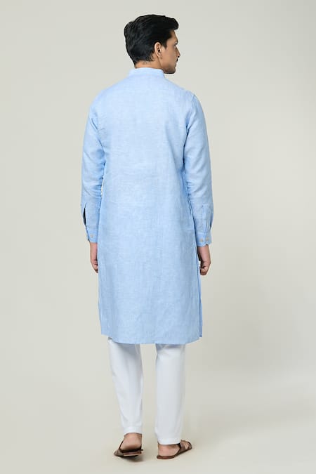 Buy_Arihant Rai Sinha_Blue Linen Plain Straight Kurta _Online_at_Aza_Fashions