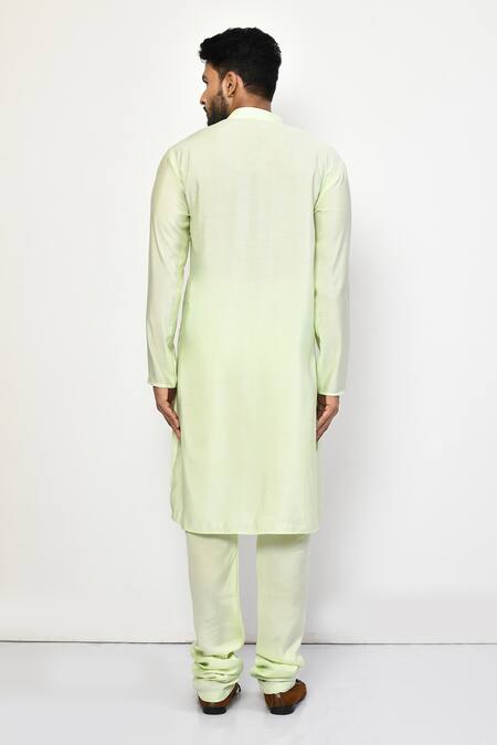 Buy_Arihant Rai Sinha_Green Cotton Plain Straight Mandarin Collar Pastel Kurta Set_Online_at_Aza_Fashions