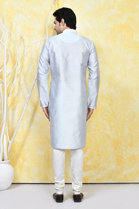 Buy_Arihant Rai Sinha_Grey Silk, Acrylic Embroidery Quad Crest Motif Resham Woven Kurta Set _Online_at_Aza_Fashions