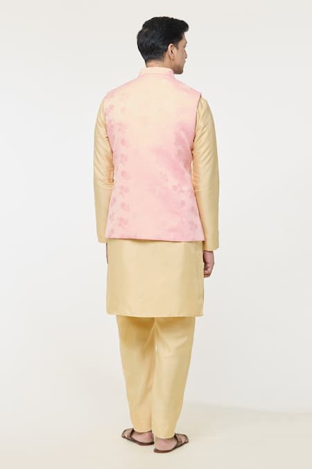 Pink Jacquard Embroidery Rose Woven Nehru Jacket