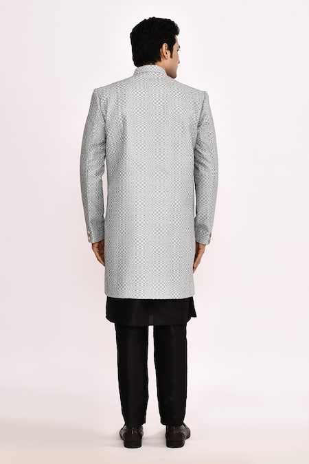 Grey cotton silk sherwani featuring a structured design and button detailing